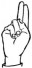 На ћирилици написано БЛАЖА КАШИЋ састоји се из 10 слова [?]. Исписано ћириличном једноручном азбуком за глувонеме: